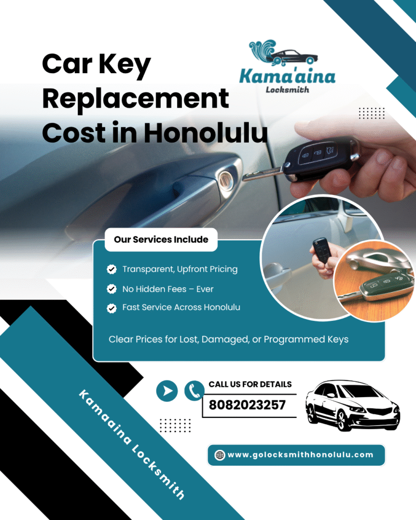 HONOLULU, HI – October 31, 2025 – A groundbreaking 24/7 mobile key replacement service has been launched by Kamaaina Locksmith, with the primary goal of slashing the car key replacement cost in Honolulu for drivers across Oahu. This innovative offering addresses the rising demand for affordable and accessible solutions as vehicle security technologies grow more intricate. On-site assistance is delivered through this service, effectively removing the necessity for vehicles to be towed to dealerships.